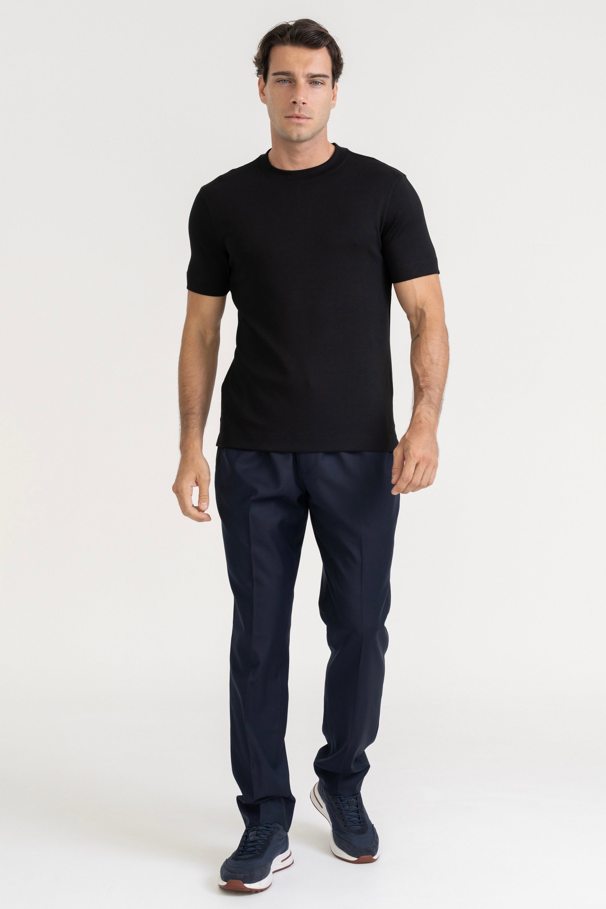 Engineered for everyday refinement, the Modal T-Shirt elevates a foundational staple through considered detail. Cut from an ultra-soft stretch modal blend, it drapes cleanly across the body while offering exceptional comfort and breathability. The fabric carries a subtle sheen and natural resiliency, allowing it to retain its shape wear after wear.
