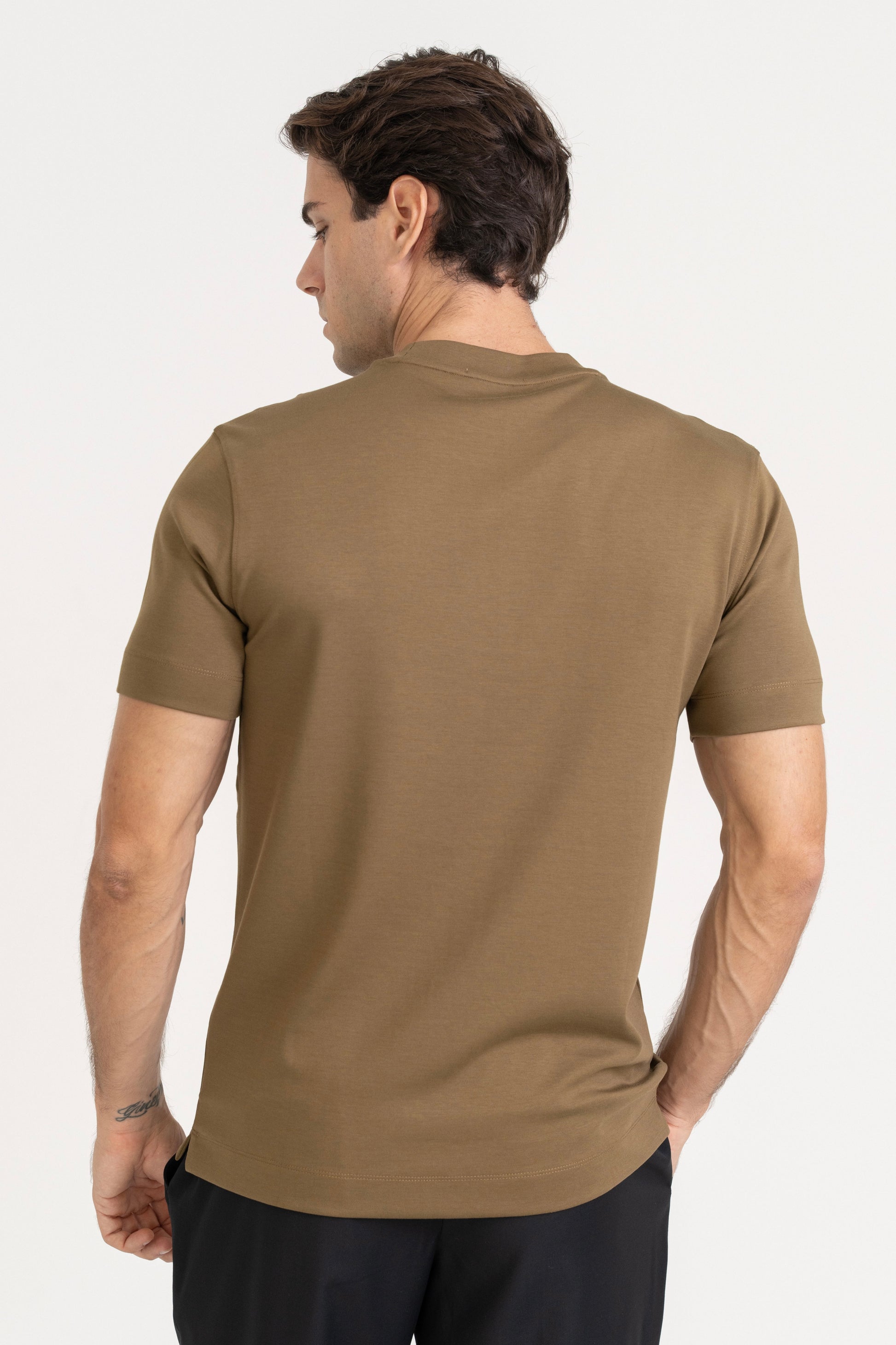 Engineered for everyday refinement, the Modal T-Shirt elevates a foundational staple through considered detail. Cut from an ultra-soft stretch modal blend, it drapes cleanly across the body while offering exceptional comfort and breathability. The fabric carries a subtle sheen and natural resiliency, allowing it to retain its shape wear after wear.