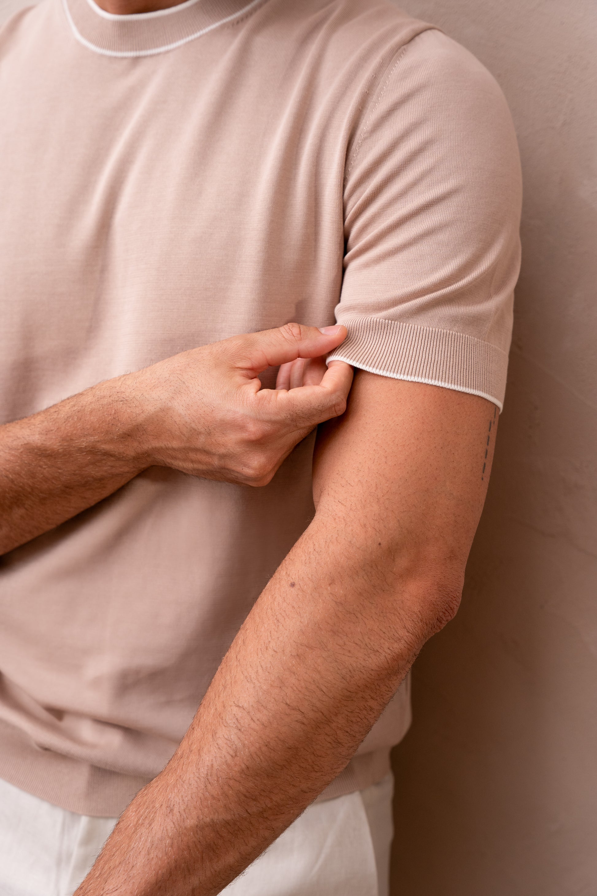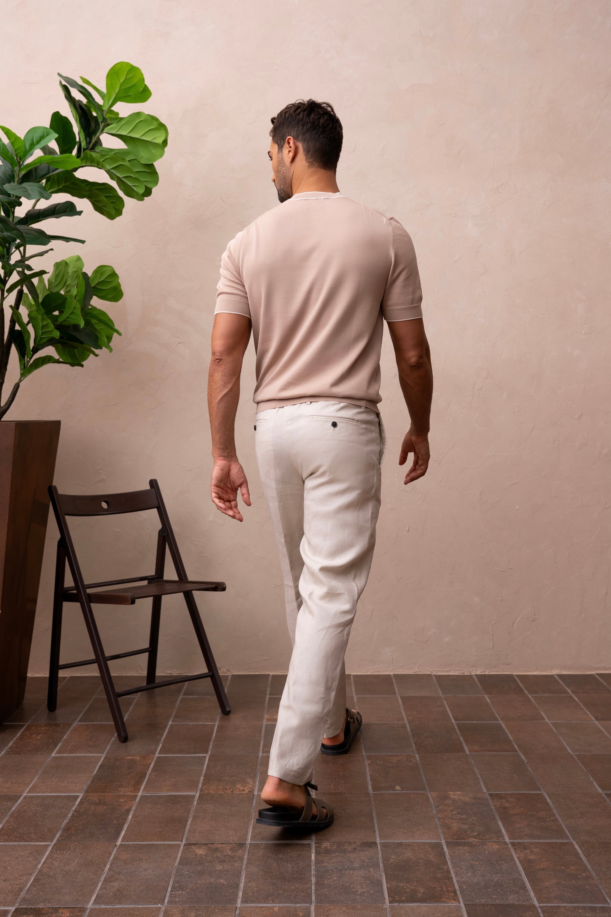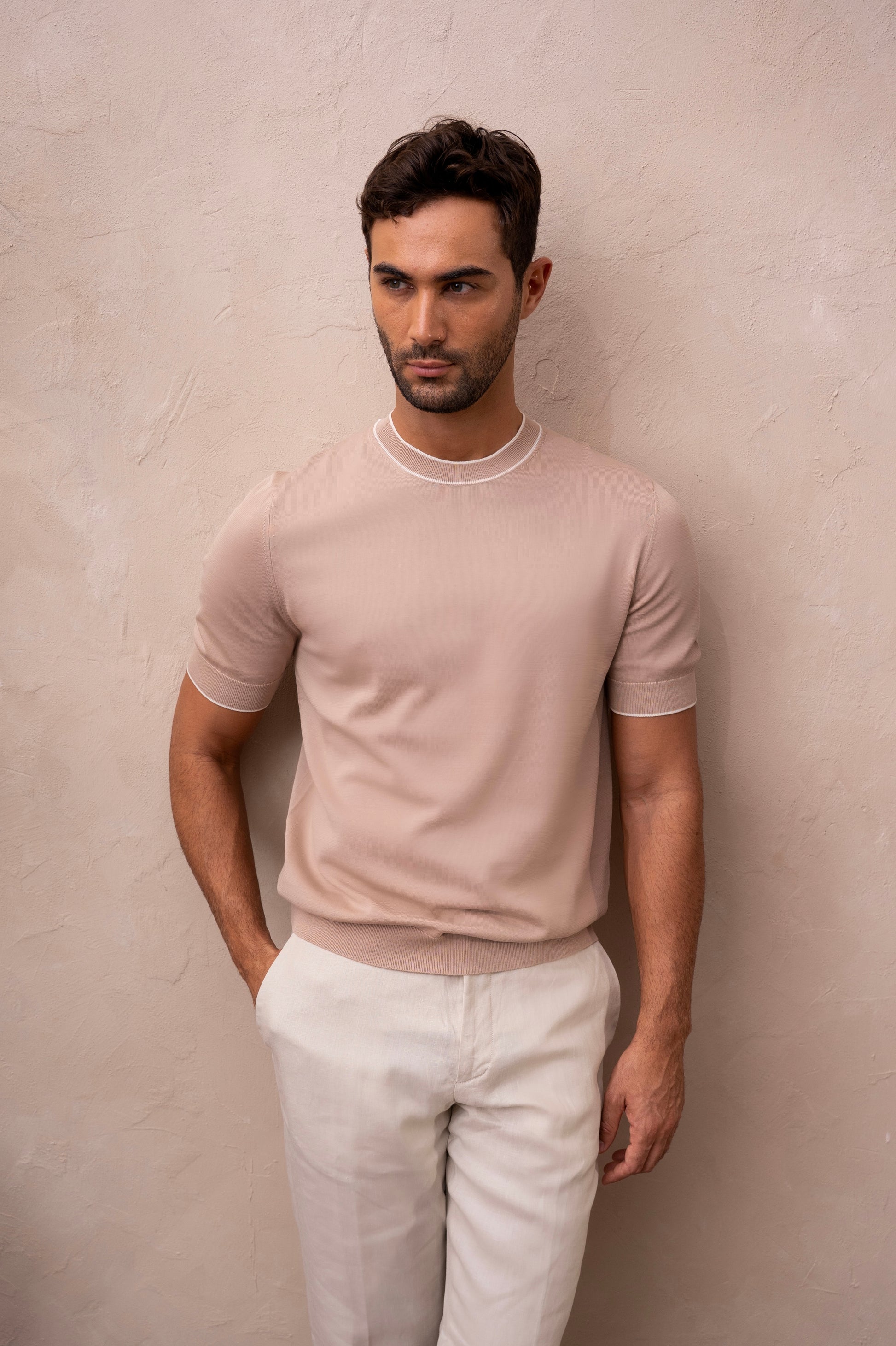 Quietly confident, effortlessly refined. The Padre is defined by the subtle contrast stripes that frame the neckline and sleeves - giving form to softness. Ribbed trims complete the look, adding polish to an otherwise pared-back piece. Designed for slow summers and considered wardrobes.