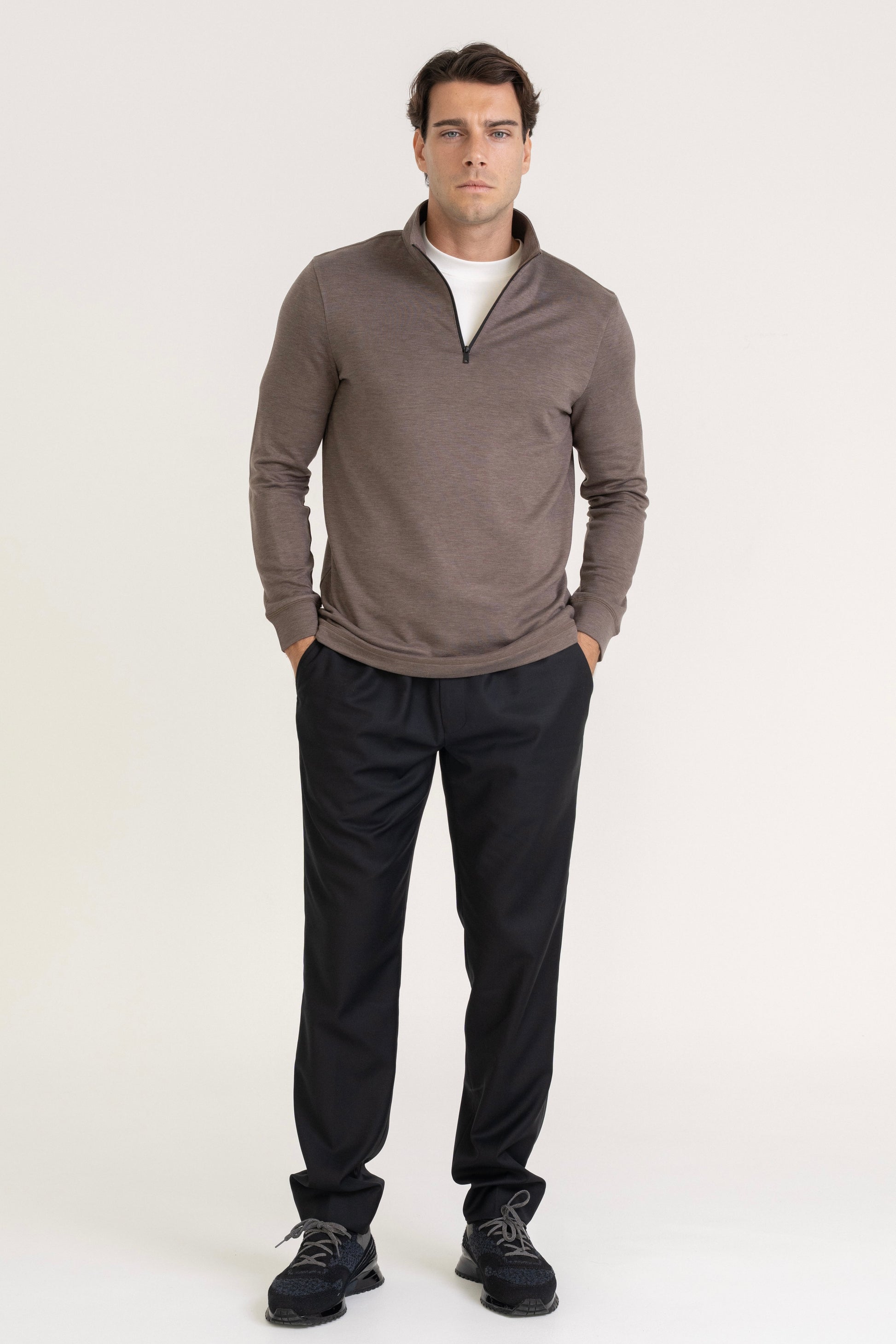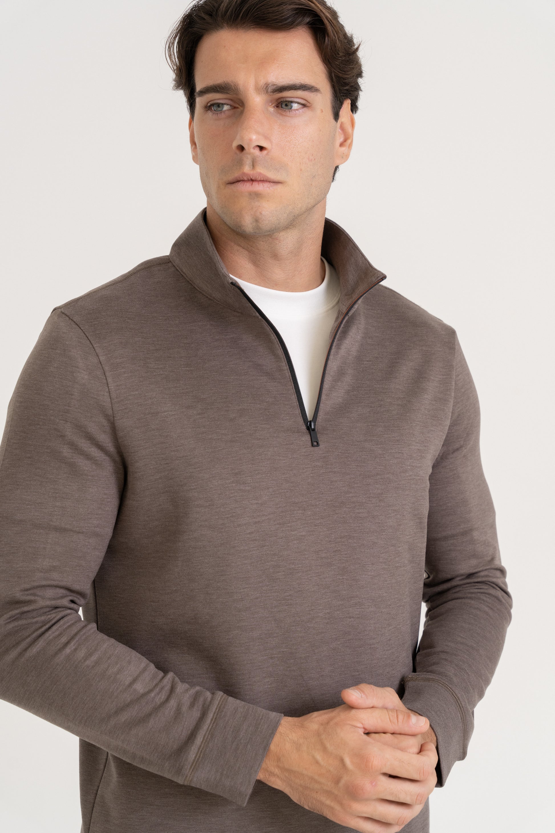 A layer built for movement without compromise. Cut from an ultra-soft stretch knit, this quarter zip delivers the polish of a sweater with the ease of loungewear. Smooth against the skin, it flexes with you - whether worn over a tee or straight on body.