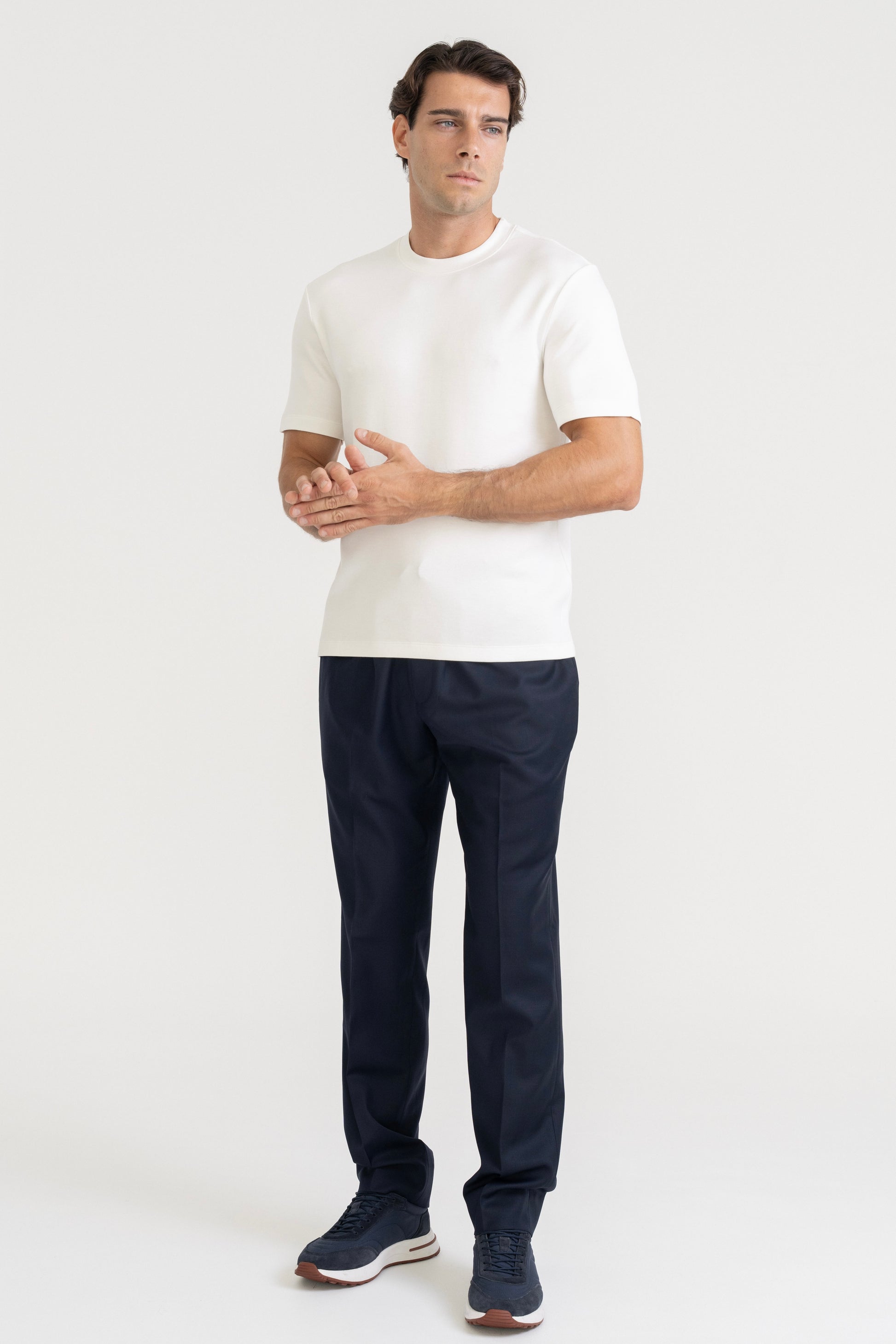 The Wool Blend T-Shirt is crafted from a premium wool–modal blend, giving it the softness and stretch of a knit with the structure of a heavyweight tee. The fabric carries a subtle texture - clean to the eye, tactile to the touch - offering depth without distraction.